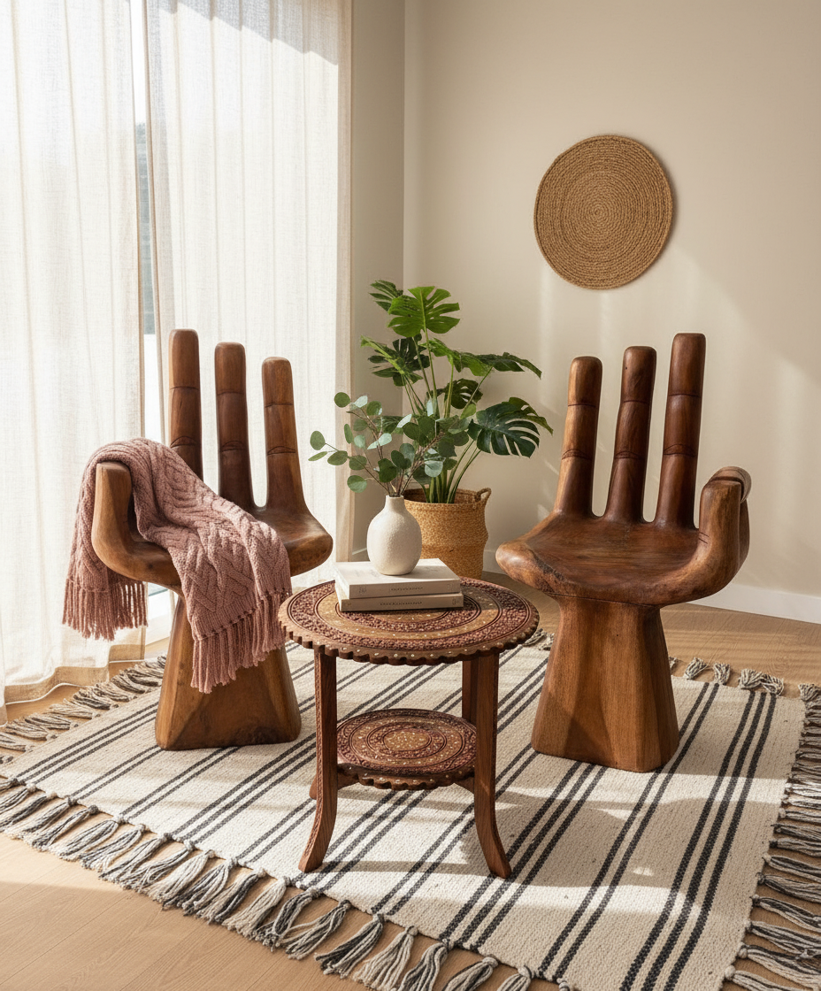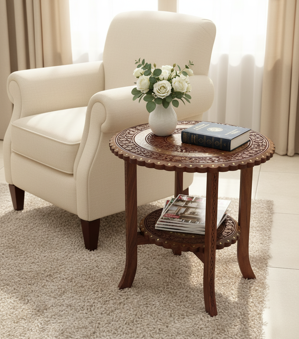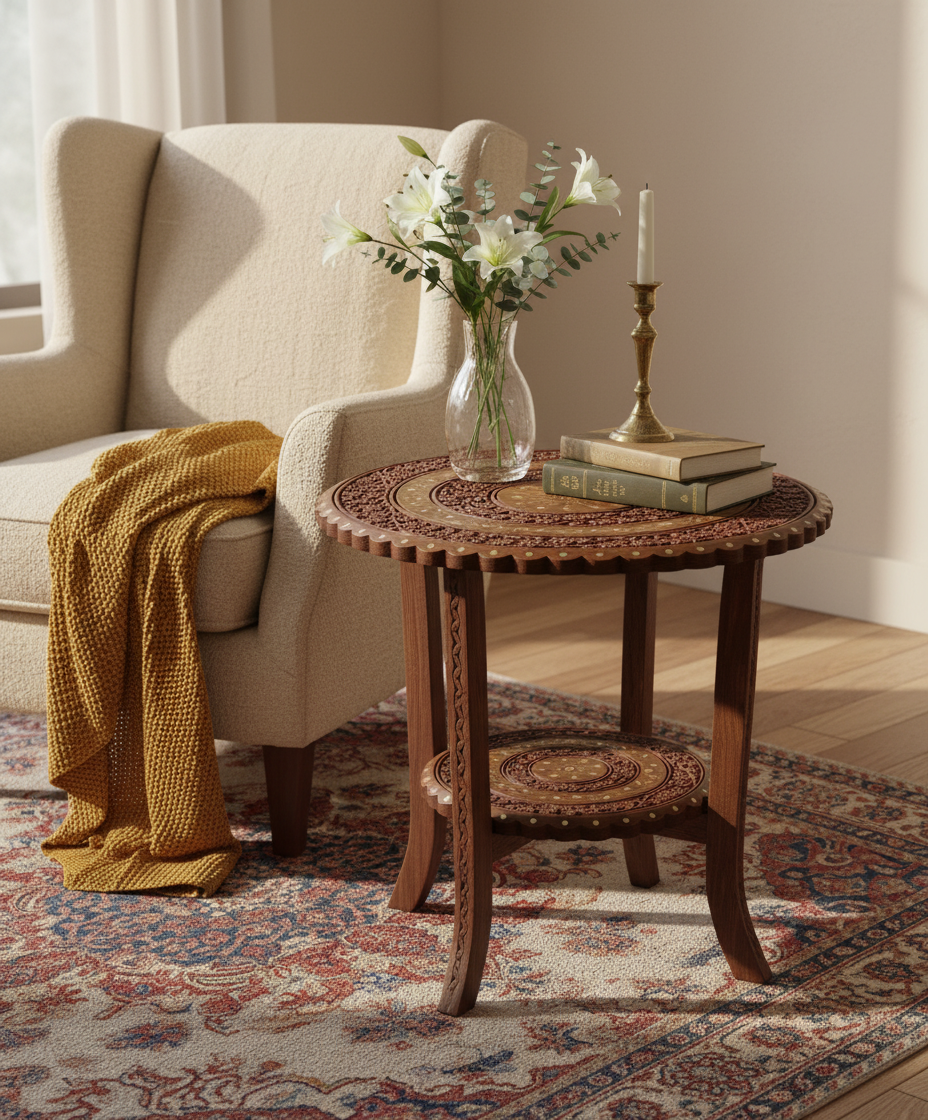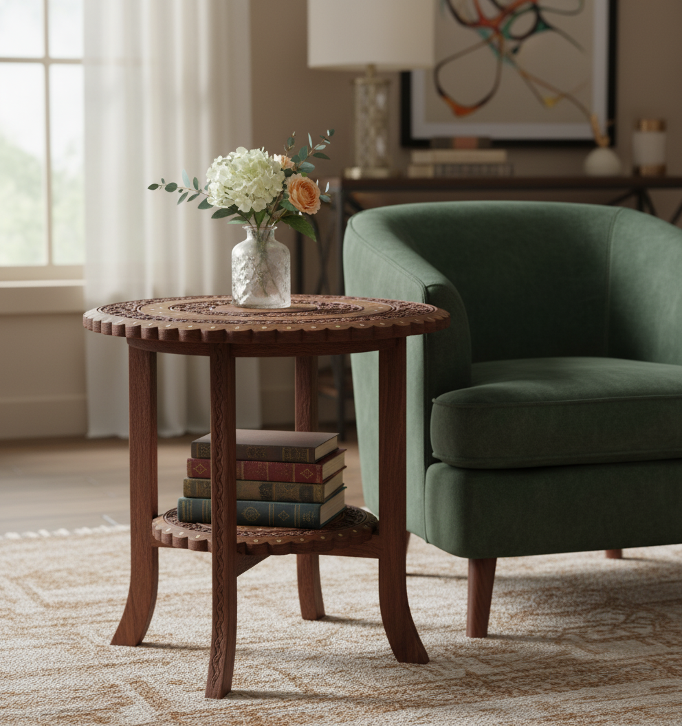 El oyması detaylarla bezeli bu ahşap sehpa,yaşam alanlarınıza geçmişin sanatını ve bugünün zarafetini taşır.Üzerine yerleştirdiğiniz her obje,mekanın hikayesini tamamlayan bir detay olur.Lorena Home Decor 'un ruhunu yansıtan bu özel parça,evinizin en sade köşesine bile kararkter katar.