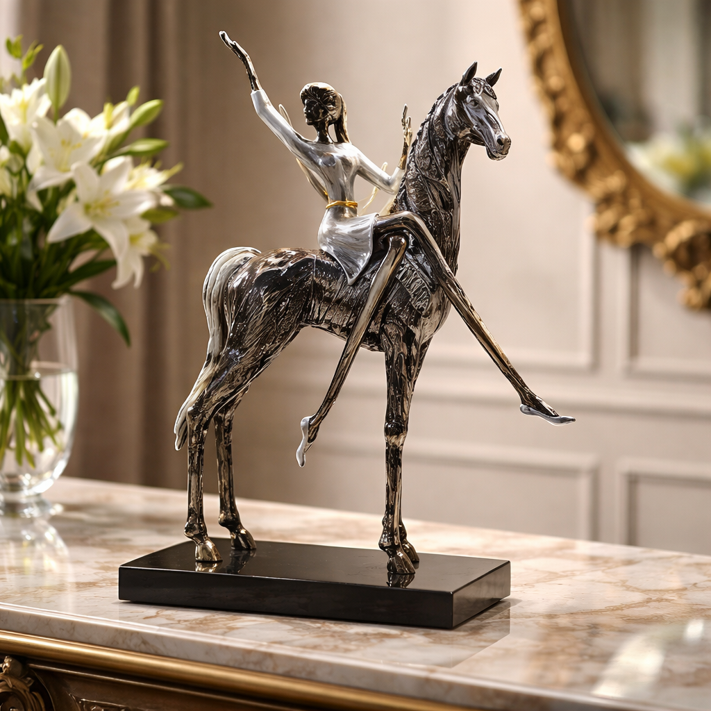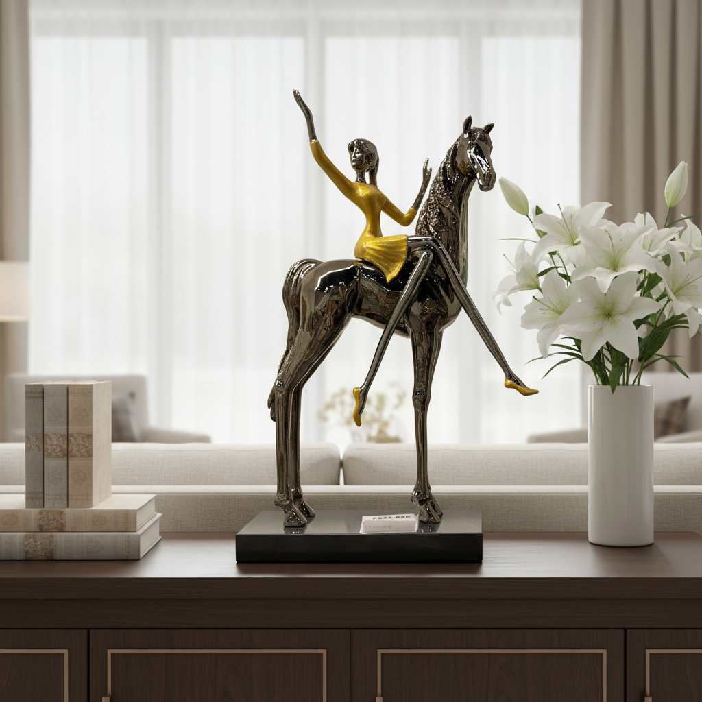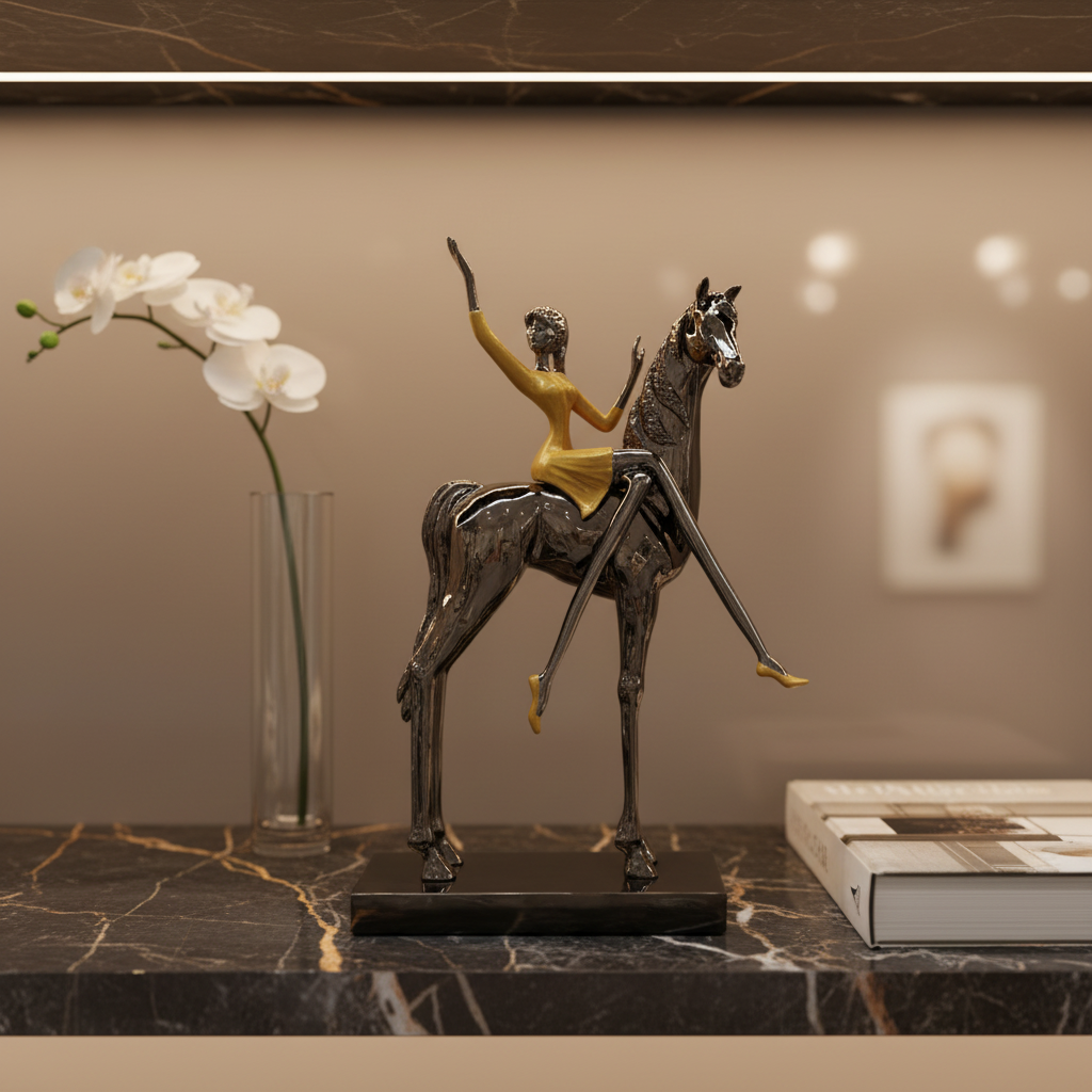 Sıradan dekorlar evinizi doldurur,ama bazı parçalar ruhunu değiştirir.Atın asaleti ve figürün zarafeti ile tasarlanan bu pirinç heykel,mekanınıza sanat ruhu katmak için hazır..