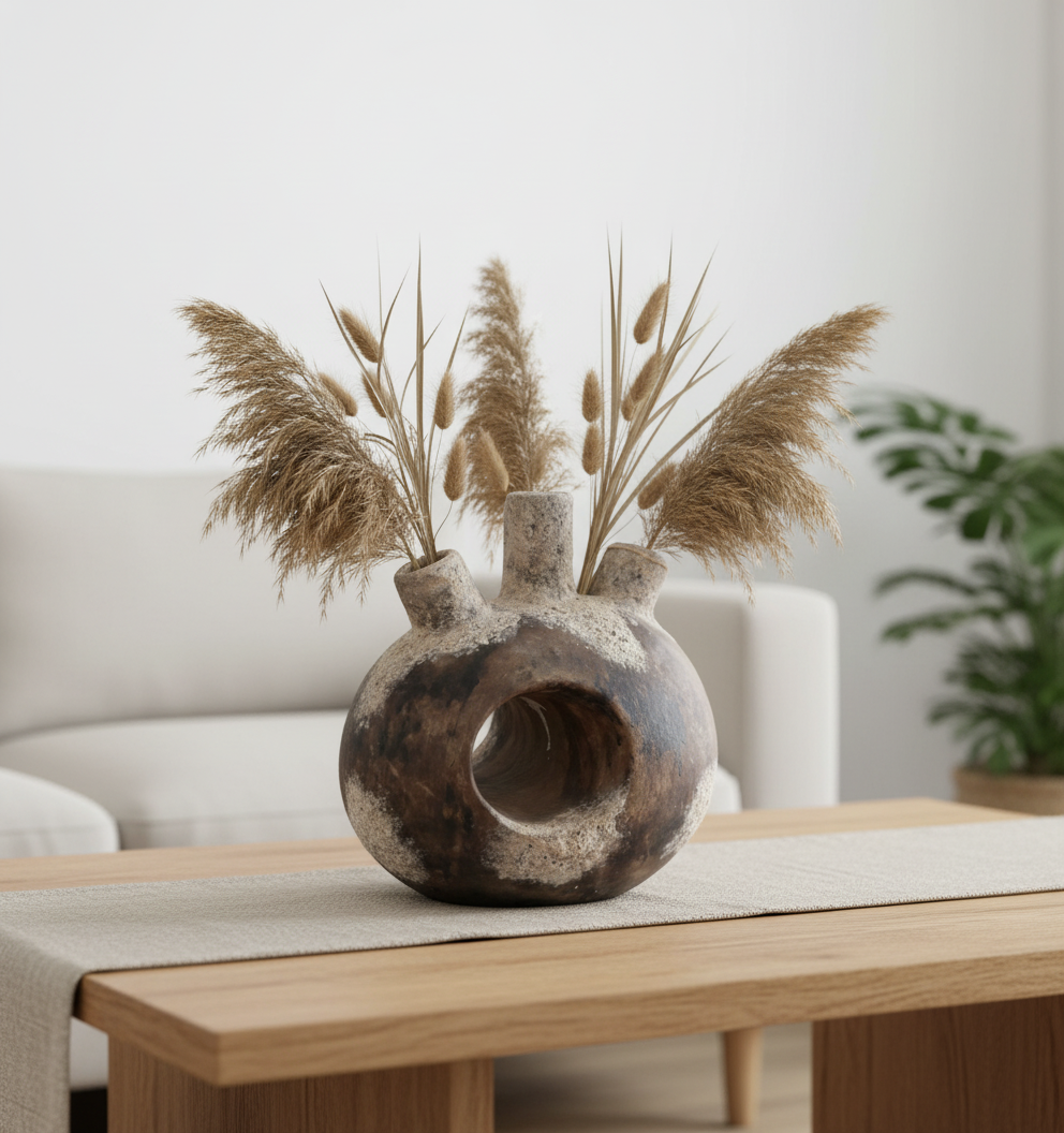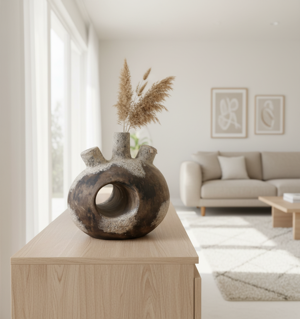 El işçiliği ile şekillenmiş bu dekoratif obje Sıradışı görünüşüyle evinizde dikkat çekici bir duruş sergiler.Eşsiz formu,doğal toprak tonları ve yüzeyindeki dokulu detaylar etkileyici bir dekor yaratır.