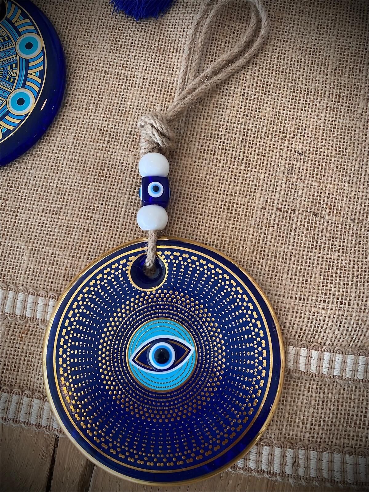 El yapımı detaylarıyla öne çıkan bu nazar boncuğu, yaşam alanlarınıza zarif bir koruma simgesi katar.