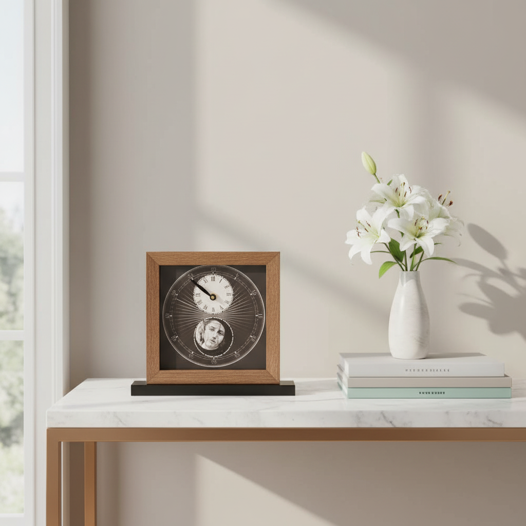 Ahşap çerçevesi ve doğal sıcaklığı,modern tasarımıyla şıklığı bir araya getiren bu dekoratif saat; güçlü duruşuyla evinizin odak noktası olacak.