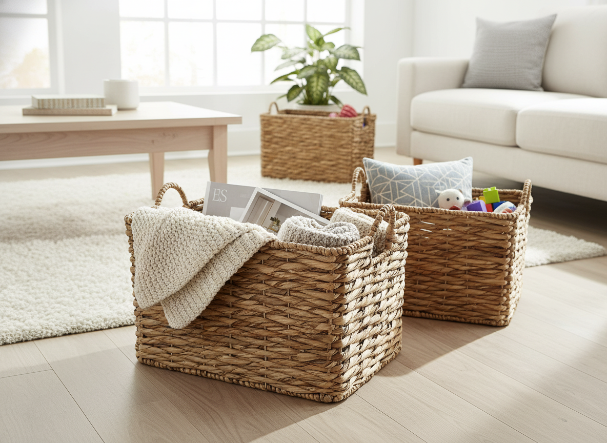 El işçiliği ile örülmüş bu doğal örgü sepetler,yaşam alanınıza hem düzen hem estetik katar.Yumuşak tonları,jüt ve deniz çayırı dokusuyla birleşerek boho ve sade dekorasyon tarzlarını tamamlar.