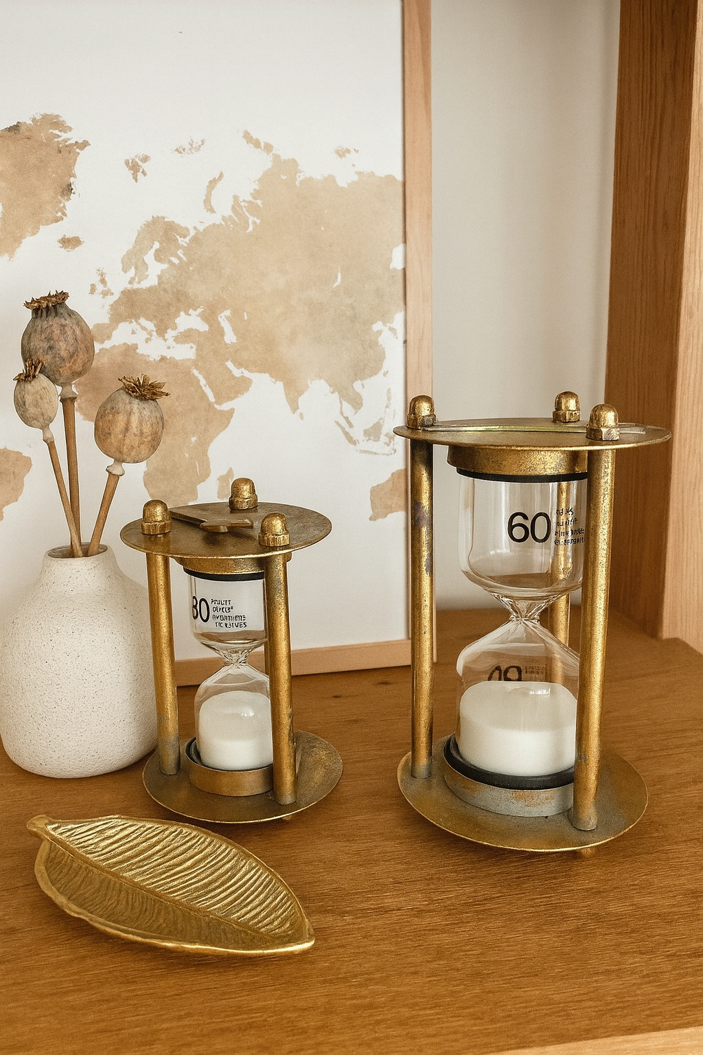 Zamanın zarafetiyle tanışın. Altın tonlarda tasarlanmış bu dekoratif kum saatleri, her köşeye nostaljik bir hava katıyor.