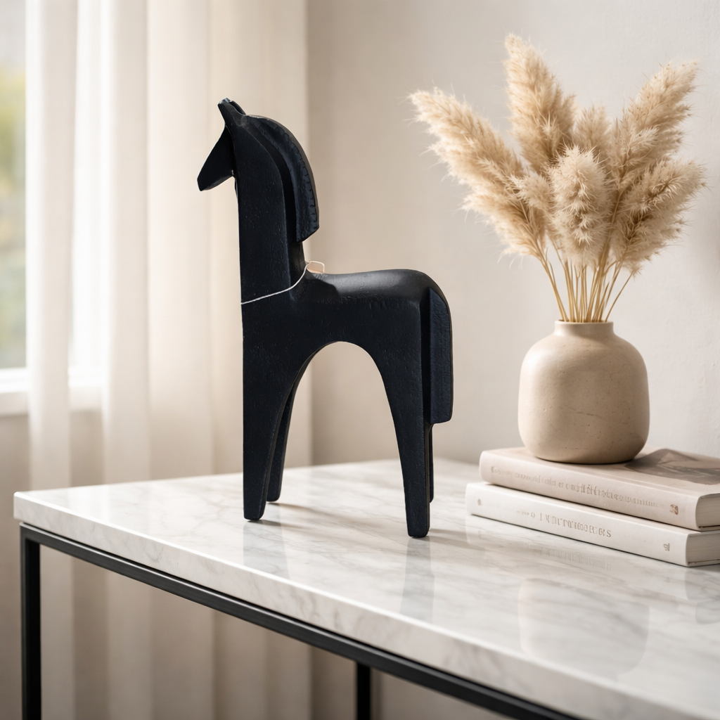 Bu modern at figürü,bulunduğu alana anında stil ve derinlik katar.Sade çizgiler,güçlü görünüm ve zamansız bir şıklık tek parçada buluşuyor.