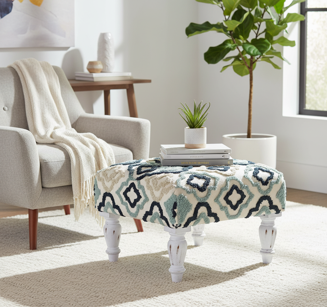 Evinizin en sıcak köşesinde hem konforu hem de tarzı bir araya getirin.El işçiliği beyaz boyalı eskitme ayaklarıylazarif bir duruş sergileyen bu puf,yumuşak dokulu kumaşıyla bulunduğu ortama hareketlilik katar.
