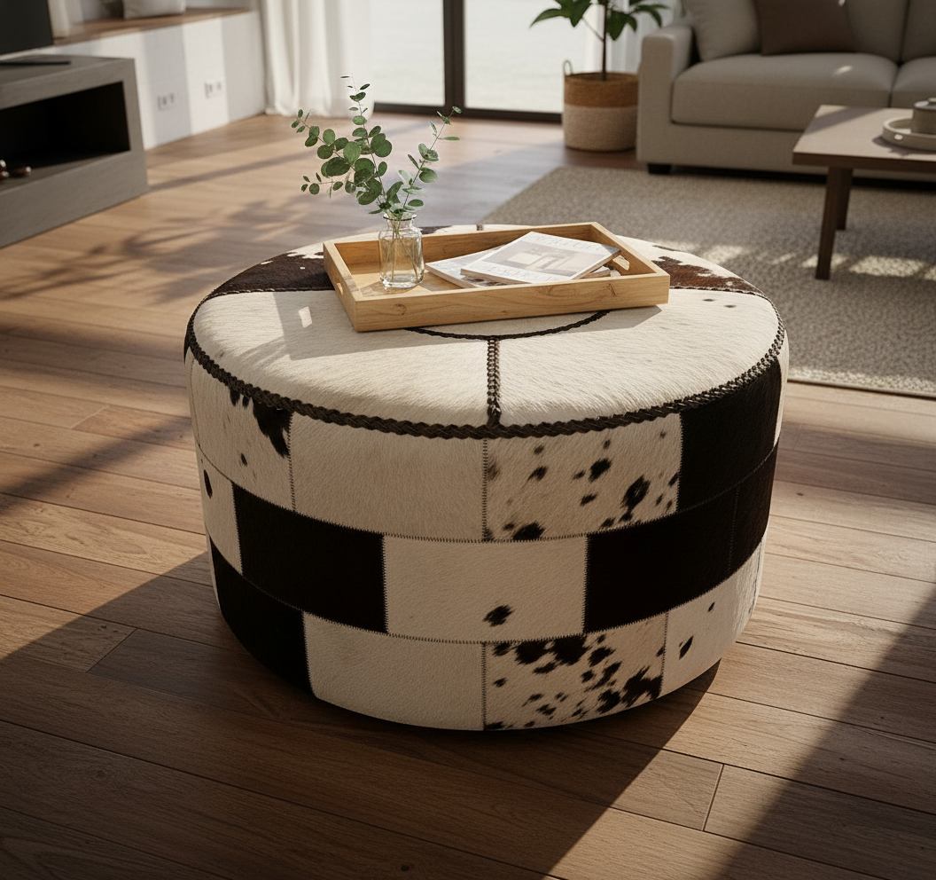 Bu el işçiliği doğal deri puf,boho yaşam stilinin sıcak,özgün ve ruhu olan dokusunu mekana taşıyor.