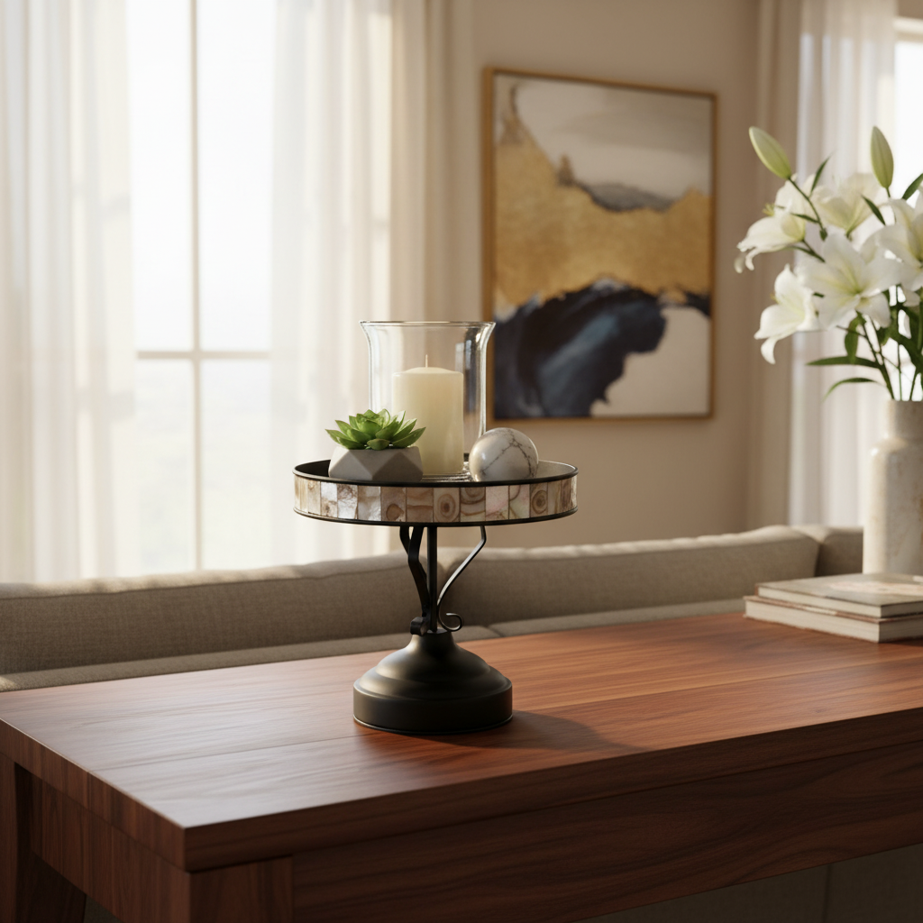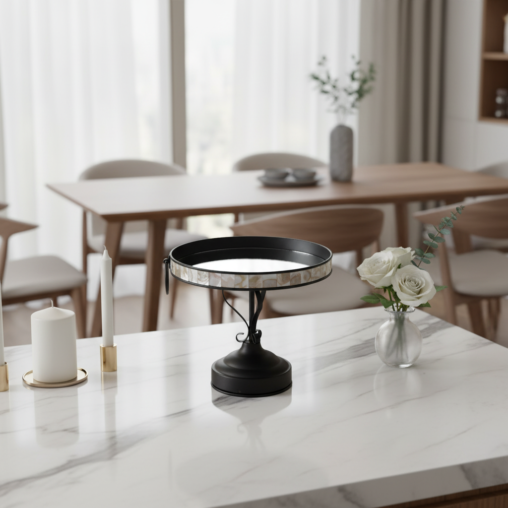 Sedef detayları ve aynalı yüzeyiyle bu özel dekor,çok amaçlı kullanım için büyük işlev sağlar..