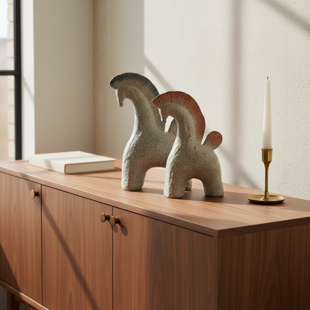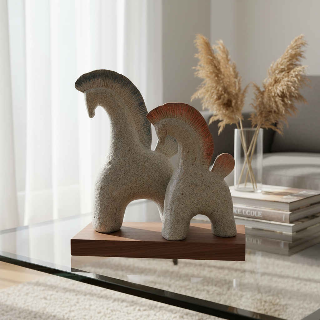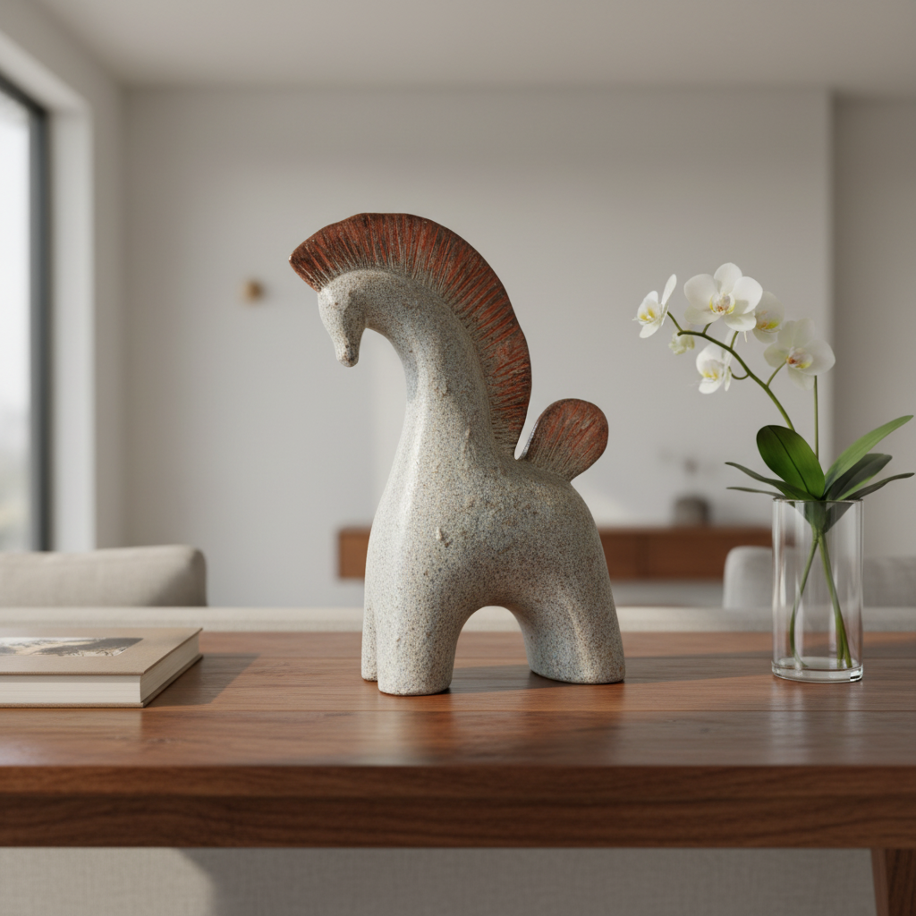 Seramikle şekillenen at figürü;Güçlü silüeti ve zamansız tarzıyla mekanda fark yaratmak isteyenler için..