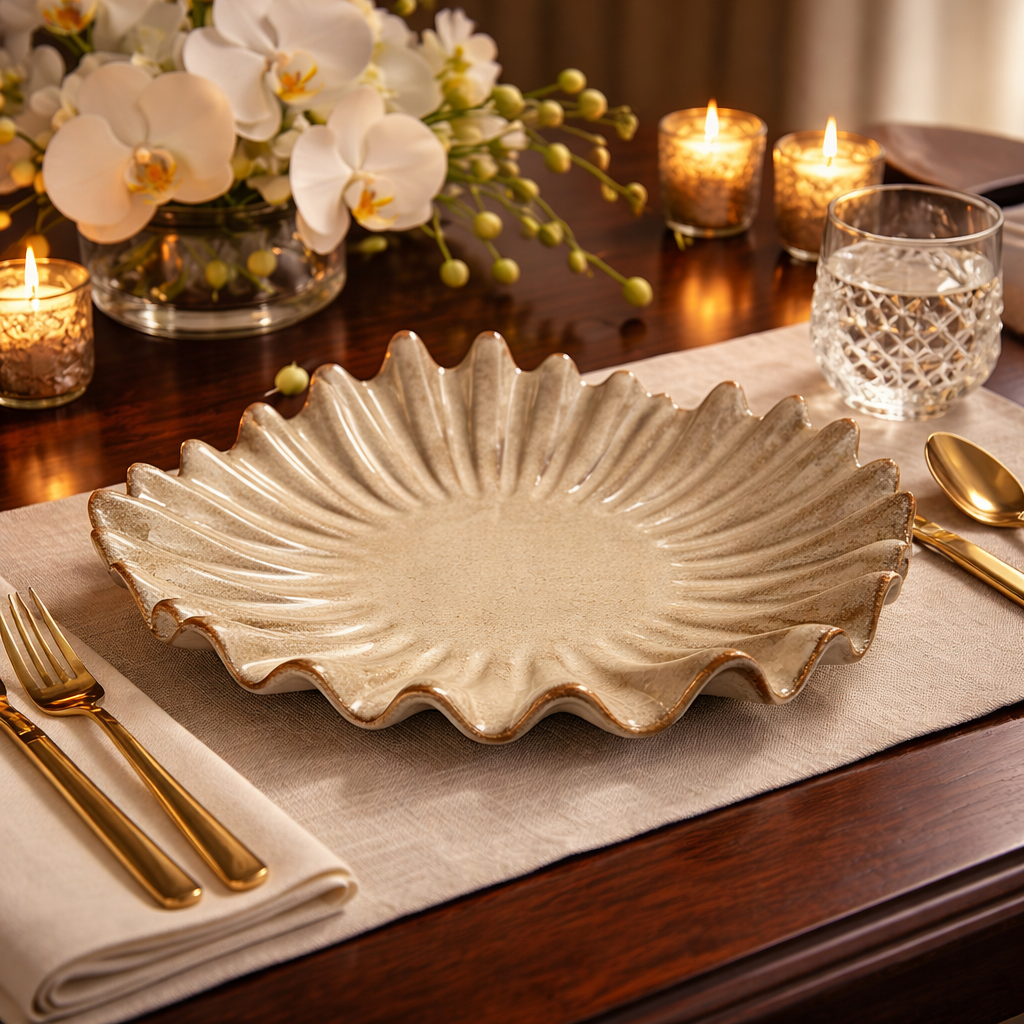 Dalga formundaki bu özel tabak,yalnızca servis için değil,aynı zamanda şık bir dekor dokunuşu için tasarlandı.