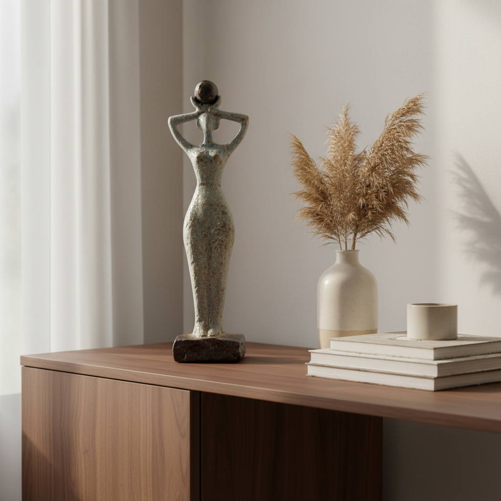 Bu seramik kadın figürü;feminen enerjiyi,dinginliği ve içsel gücü temsil eden zamansız bir dekor parçasıdır.