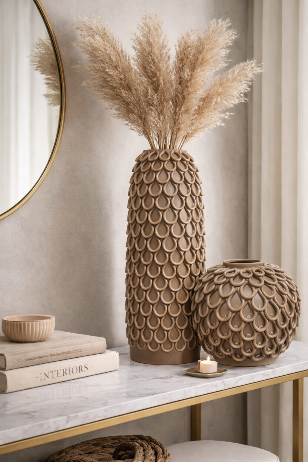 Doğal tonları ve zarif formuyla evinizde huzurlu bir atmosfer oluşturur.