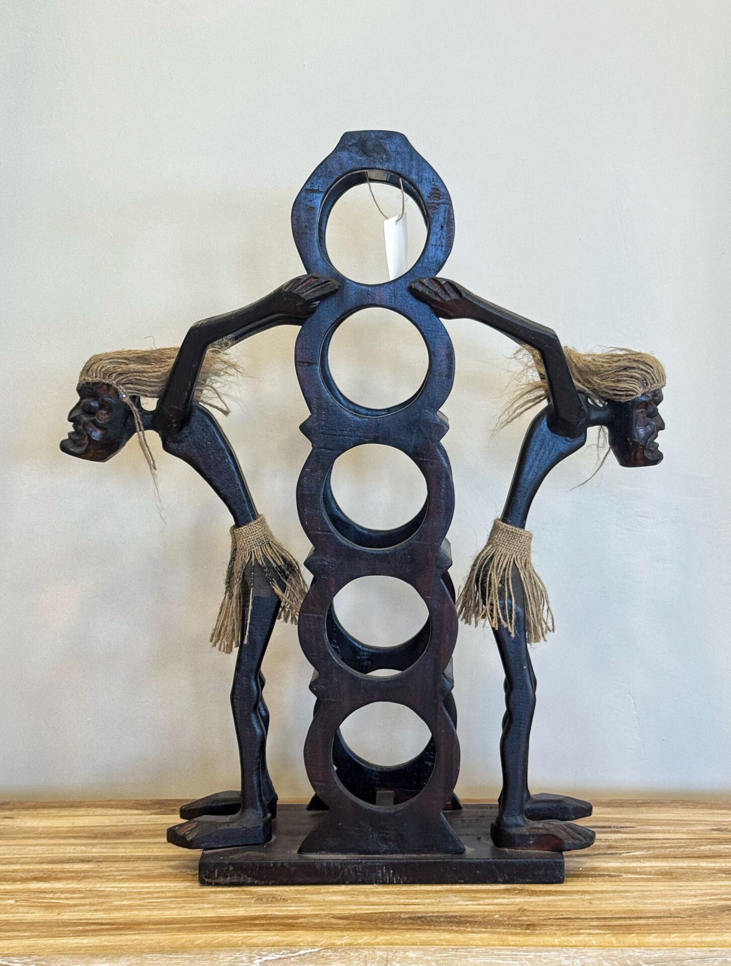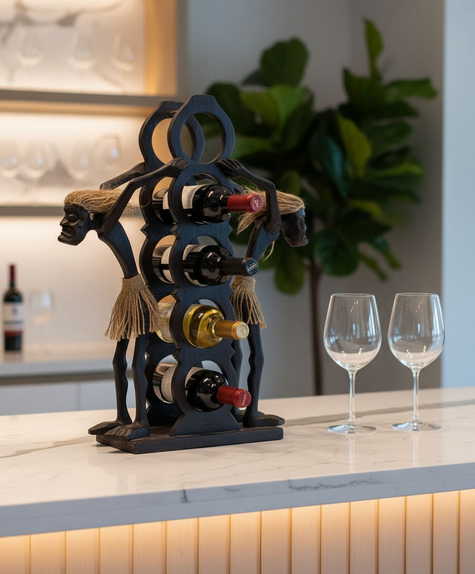 Her detayı özenle işlenmiş,doğal ahşap malzemeden üretilmiştir.İki figürlü özgün tasarımıyla sadece bir şaraplık değil,aynı zamanda şık bir dekor objesidir.